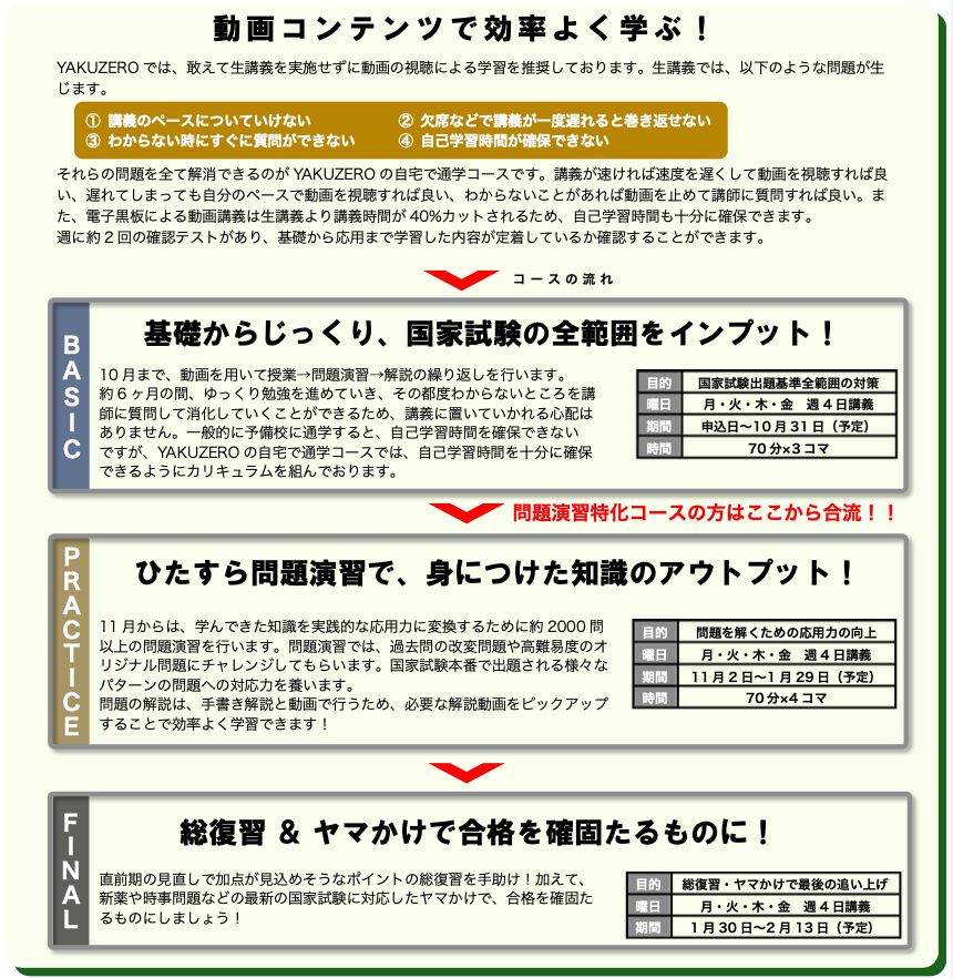 国家試験合格までのプログラム ※【自宅で通学コース】